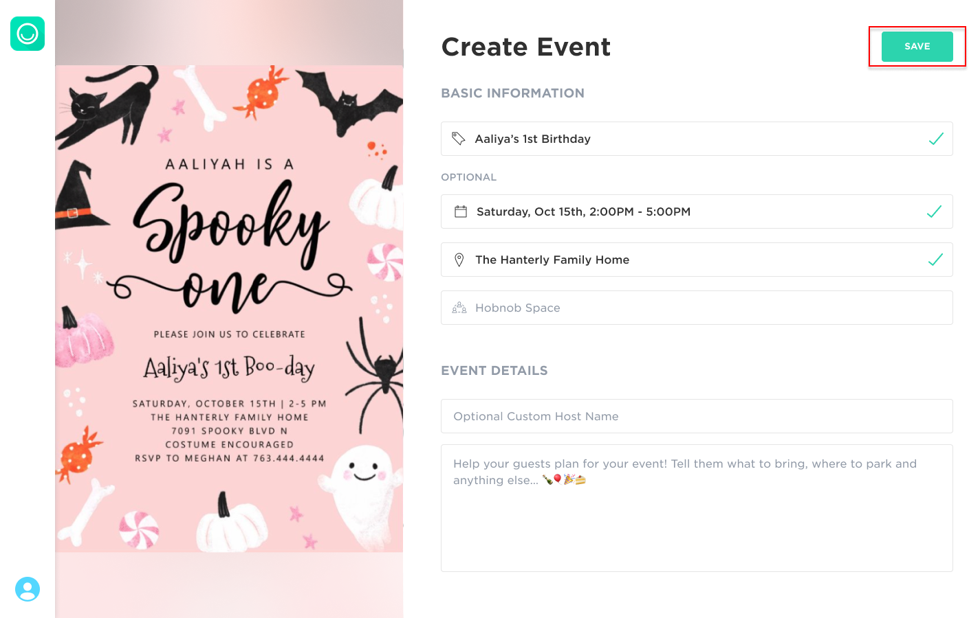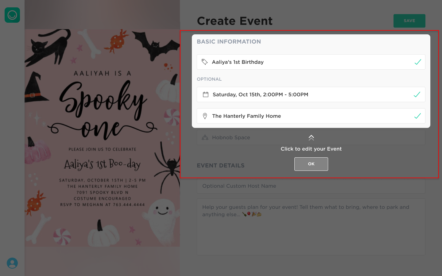Just follow the prompts on the page - your event details and design will automatically be sent to Hobnob to help you get started quickly.