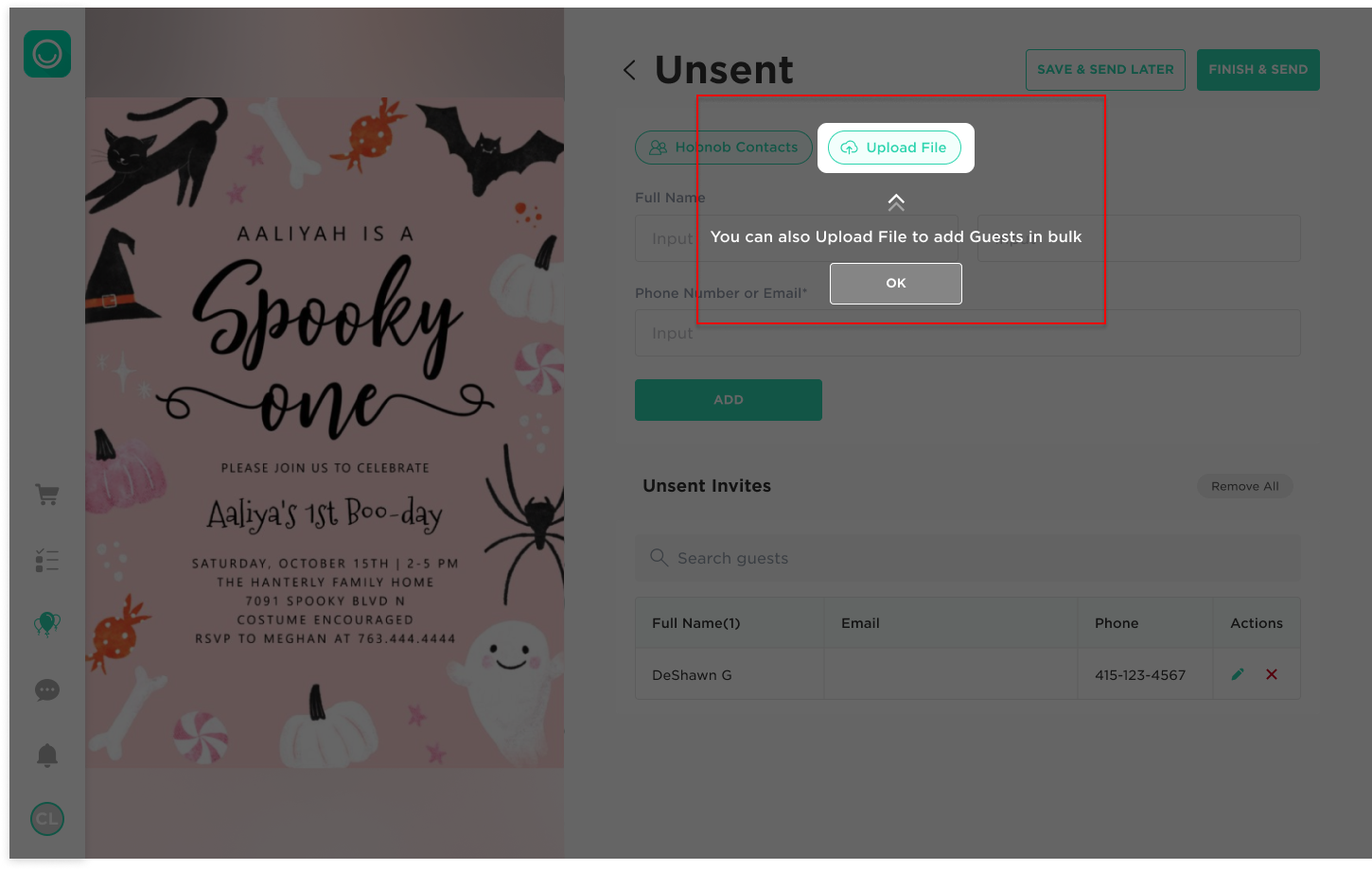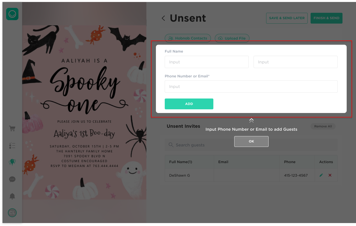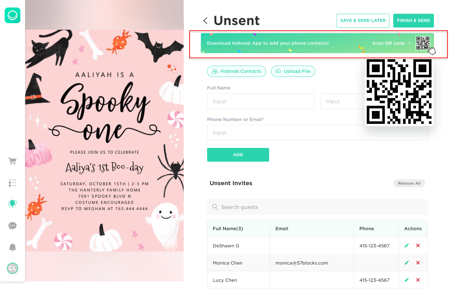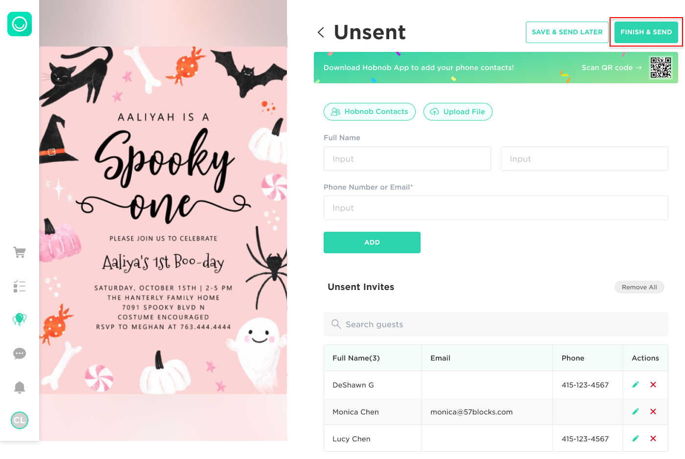 Once your guest list is set, tap Finish & Send and your invitations will go out right away!